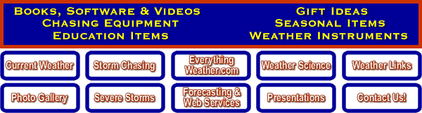 [Current Weather] [Photo Gallery] [Storm Chasing] [Severe Storms] [Weather Superstore] [Forecasting & Web Services] [Weather Science] [Weather Presentations] [Weather Links] [Contact Us!]
